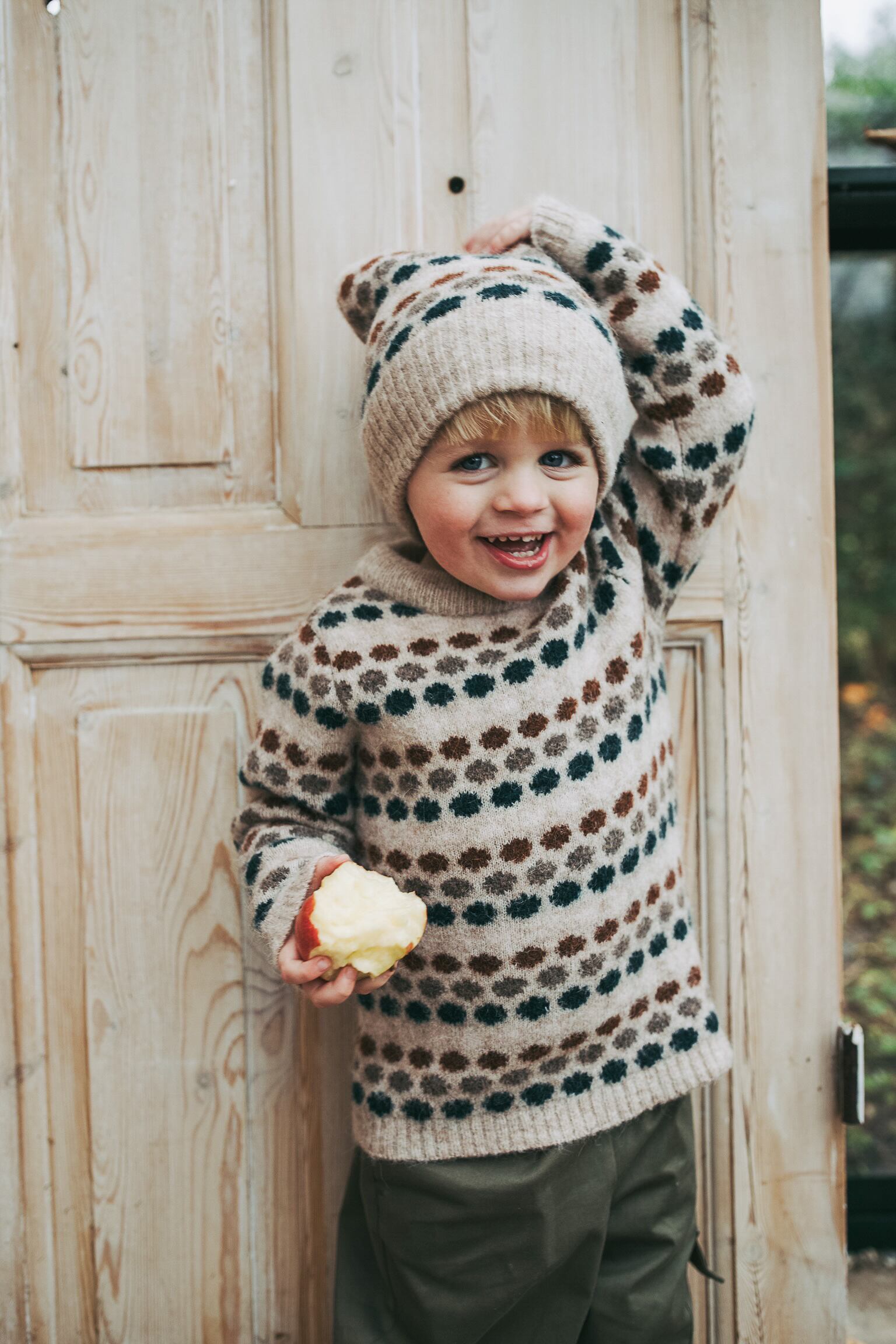 ドット柄が可愛い、暖かく快適なジャカードニット帽。同じカラーと柄のスタードットプルオーバーと相性抜群です。