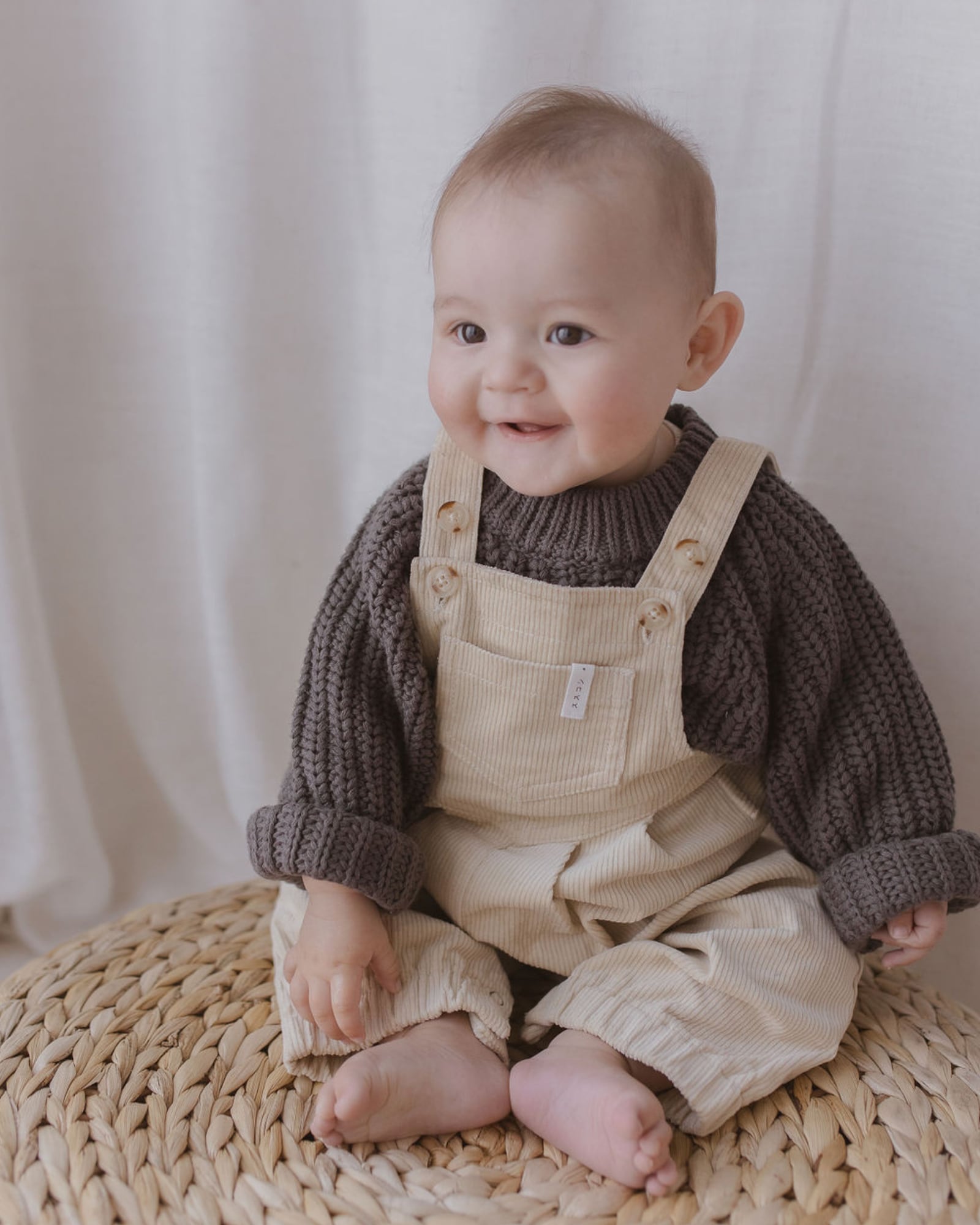 快適さと耐久性を追求した新作のコーデュロイオ ーバーオール。着回し力抜群です。Susukoshiボディスーツと合わせたり、寒い季節にはニットと重ね着したりできます。