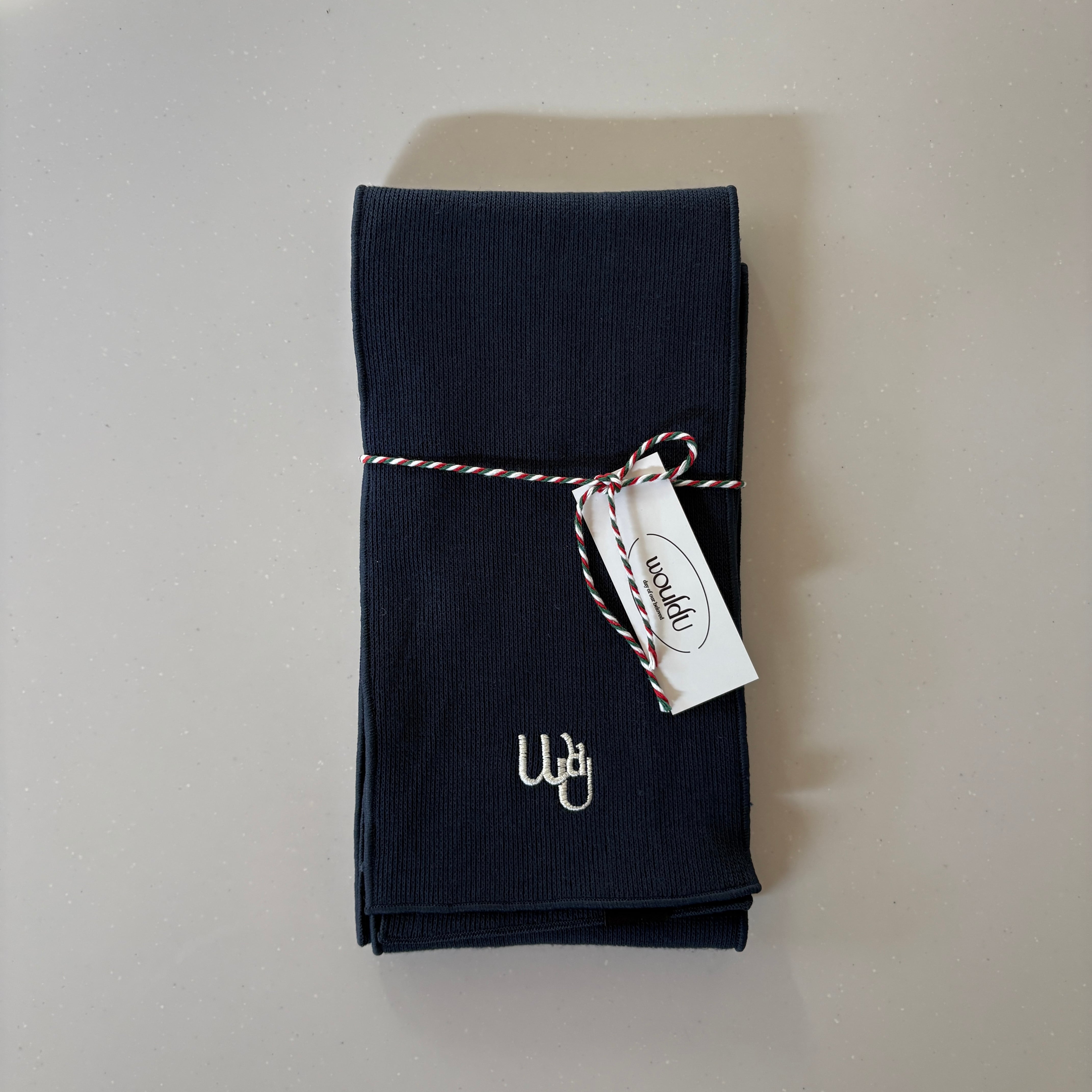 Would u の刺繍ロゴ入りのマフラーです。
