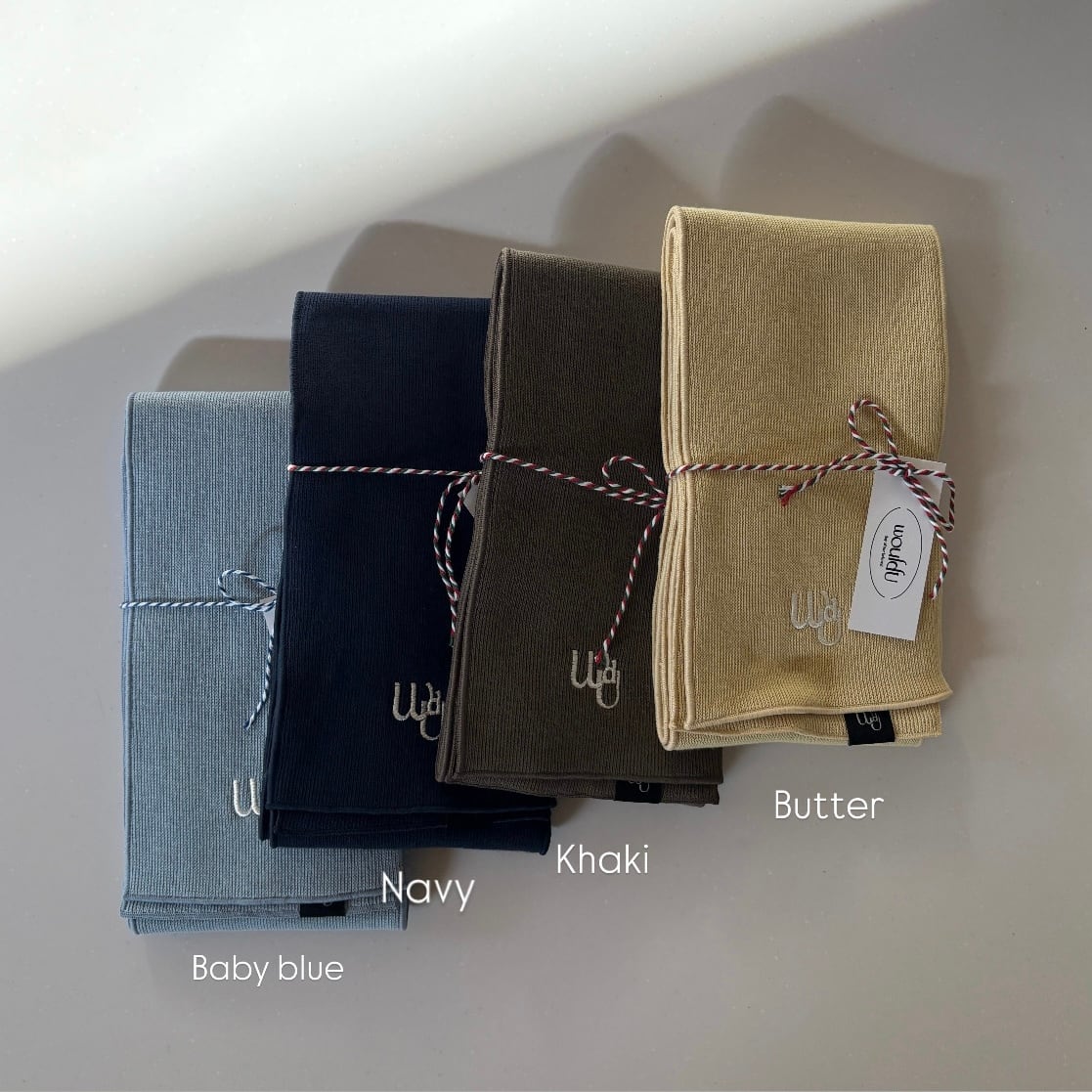 Would u の刺繍ロゴ入りのマフラーです。
